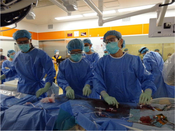 最先端デバイスを手に取り、自分の手で大動脈弁を留置する貴重な一瞬。目の前で動くリアルな解剖モデルを相手に、確かな手応えと自信を得られます。